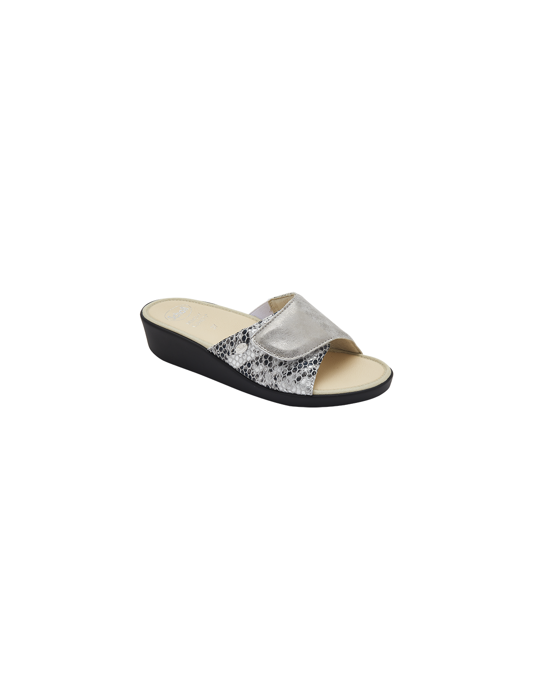 La sandalia LEDEL envuelve el pie con delicadeza gracias a su forro de suave piel y a la tira de velcro que permite perfecta ajustabilidad.