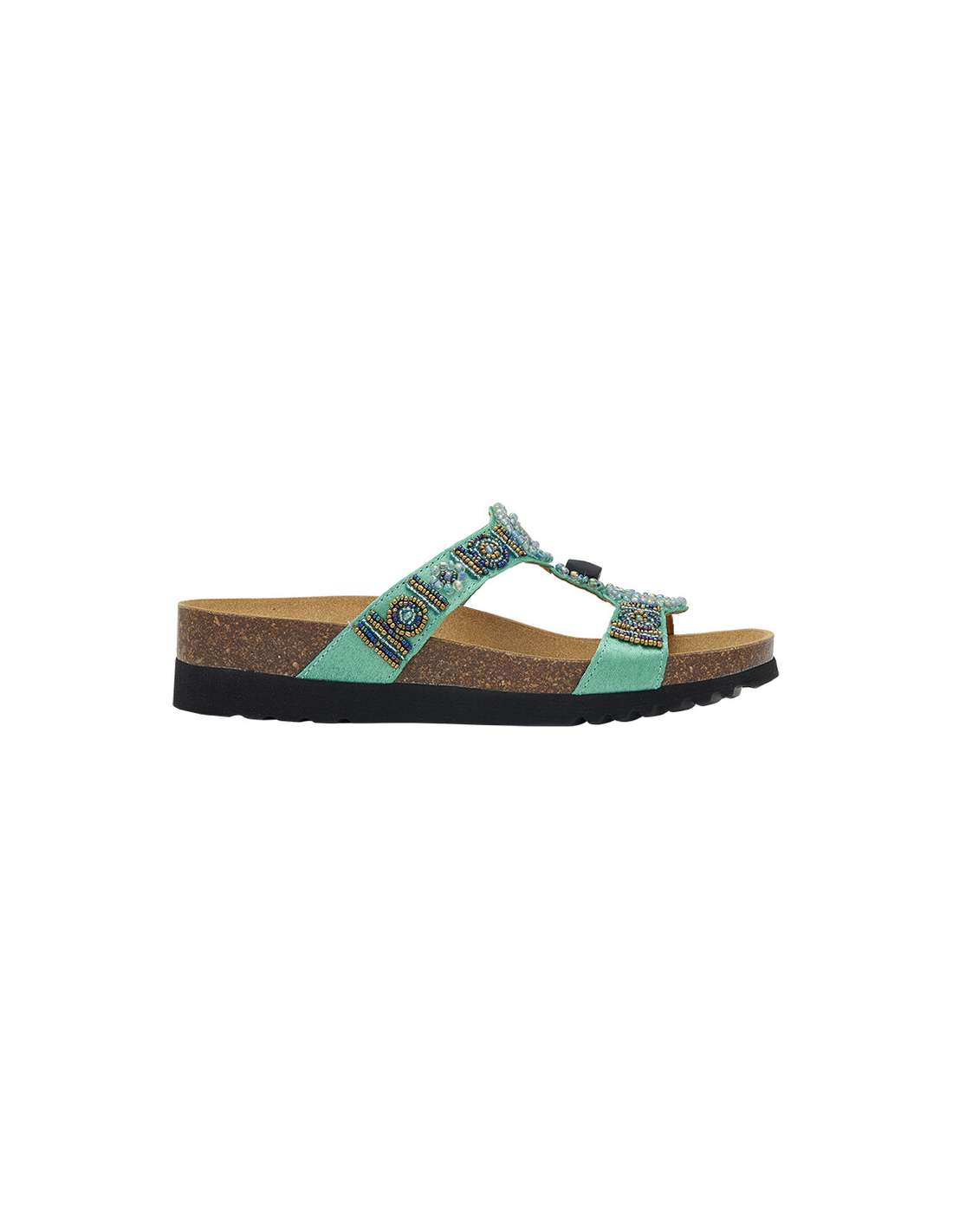NEW BOGOTA' WEDGE es una auténtica sandalia de culto de Scholl que conquista a sus clientes por su estilo etnico y por los colores de la pedreria que adorna la pala.