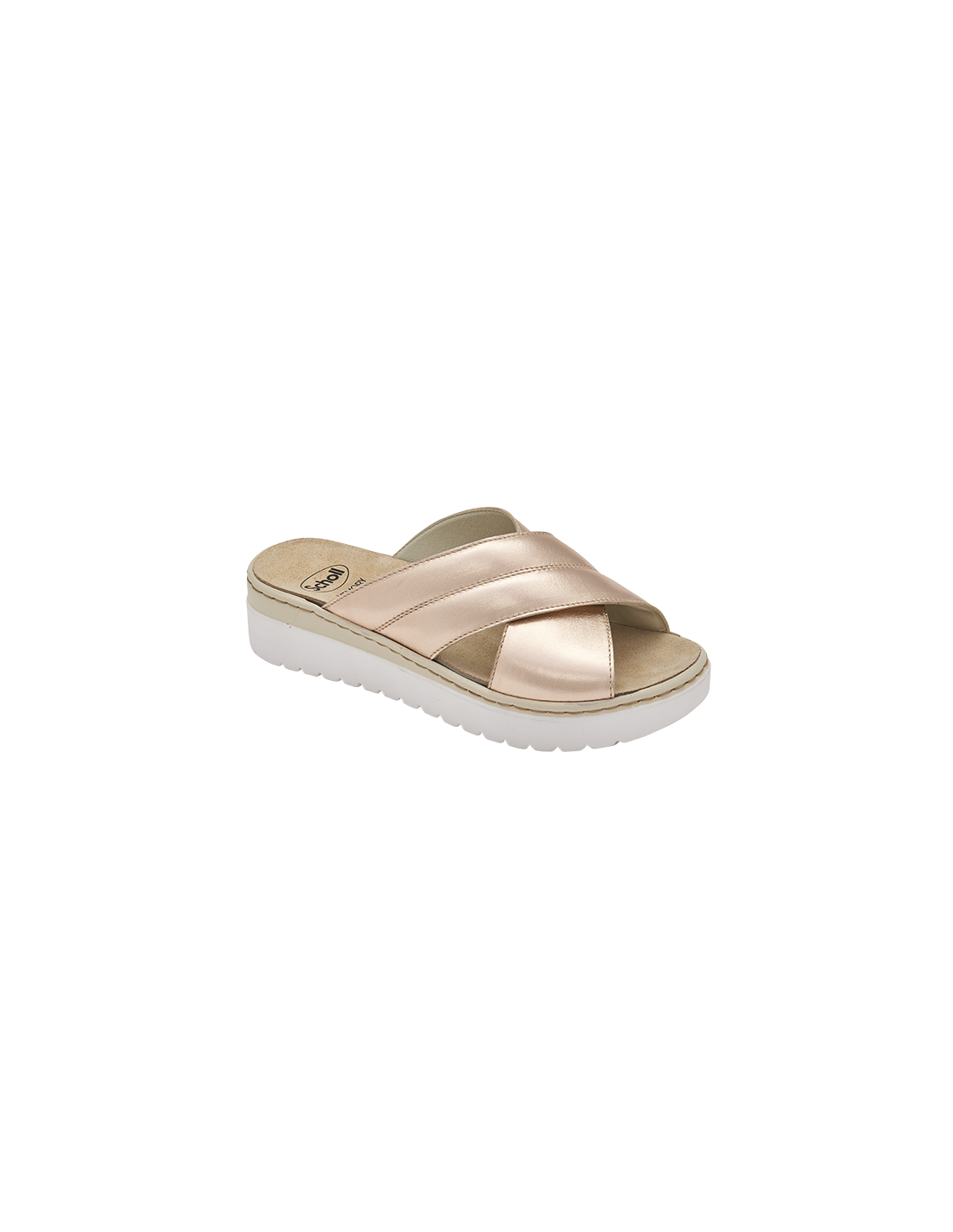A sandália CAMAIORE CROSS é a mistura perfeita entre conforto e modernidade: suas tiras cruzadas em couro metalizado e sua palmilha removível com tecnologia Scholl Memory Cushion® vão envolver delicadamente o seu pé, redistribuindo a pressão por todo o solado, tornando cada passo mais leve.